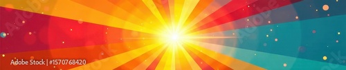 Obraz premium Vibrant sunburst radiating outwards, summery color palette, rays, advertisement