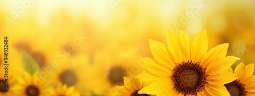 © Nice Seven, Fototapeta premium Vibrant Sunflower Bloom in a Beautiful Garden Setting Surrounded by Warm Sunlight and Soft Focus Background