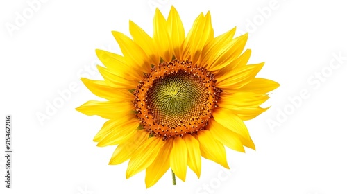 © pkproject, Fototapeta premium Vibrant Sunflower Blooming in Stark White Backdrop with Intricate Petal Texture