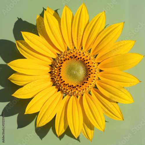 Fototapeta premium Vibrant sunflower blooming in sunlight on muted green background, nature's...