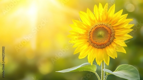Fototapeta premium Vibrant sunflower blossom in sunlight closeup view