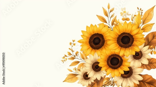 © Cheetose, Obraz premium Vibrant Sunflower Bouquet Flat Design Illustration in Close-up View