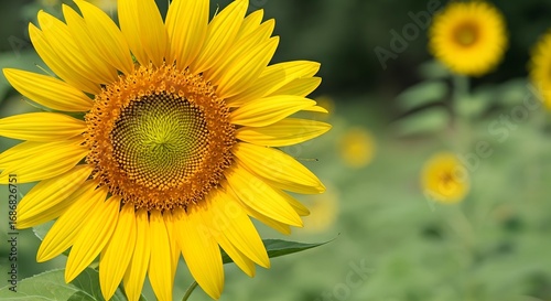 © AndiMuhammad, Fototapeta premium Vibrant Sunflower Close-Up in a Field of Blooms