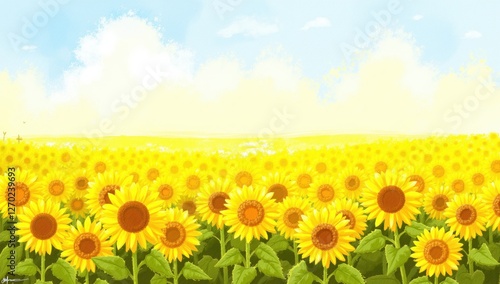 Fototapeta premium Vibrant Sunflower Field Basking Under Bright Summer Sky Strokes