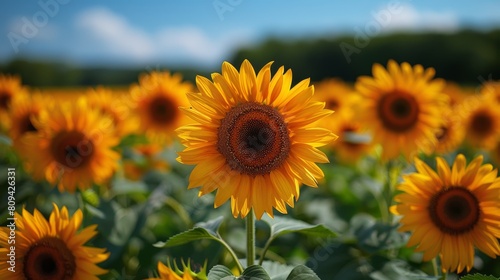 © Denys, Fototapeta premium Vibrant sunflower field in bloom