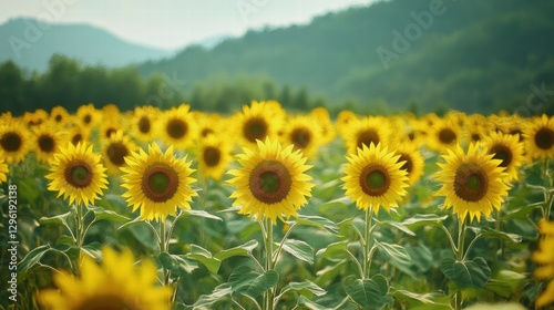 © pratum, Fototapeta premium Vibrant Sunflower Field Landscape at Sunset