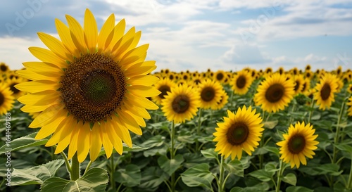 Fototapeta premium Vibrant Sunflower Field Under a Cloudy Sky