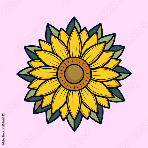 Fototapeta premium Vibrant Sunflower Illustration with Detailed Petals and Leaves