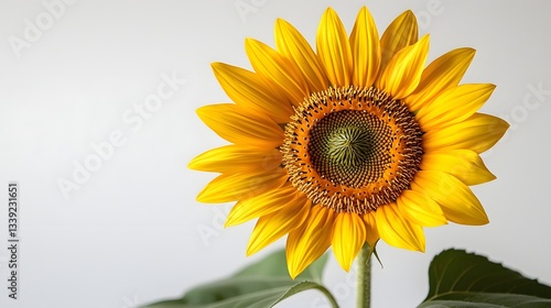 © Thares2020, Obraz premium Vibrant Sunflower in Bloom Against White Background