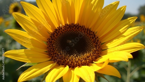 Fototapeta premium Vibrant sunflower in bloom golden petals with textured ridges spiraled seeds...