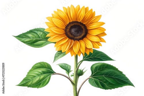 © HM DESIGN, Obraz premium Vibrant sunflower in full bloom with green leaves