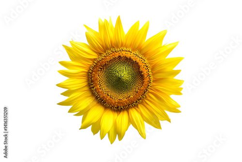 © Oriel-team, Fototapeta premium Vibrant Sunflower Isolated on Black Background A Stunning Floral Image,