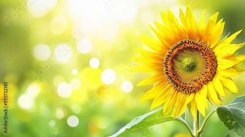 © Noah, Fototapeta premium Vibrant Sunflower on Blurred Green Field