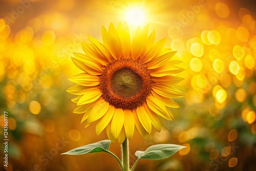 © Man888, Fototapeta premium Vibrant Sunflower on Yellow Background: Warmth, Happiness, Nature's Beauty Stock Photo