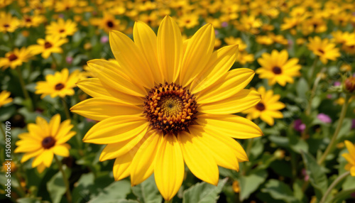 Fototapeta premium Vibrant sunflower stands out in lush field filled with blooming flowers,...