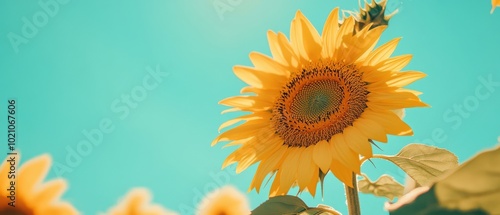 Obraz premium Vibrant sunflower under a clear blue sky on a sunny day, showcasing the...