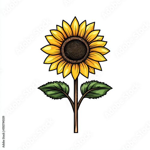 Fototapeta premium Vibrant sunflower with bold yellow petals and green leaves, showcasing its...