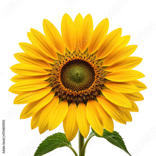 © Girindra, Fototapeta premium Vibrant sunflower with golden petals against a solid black background