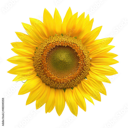 Fototapeta premium Vibrant sunflower with golden petals and a detailed center, isolated on a white background, representing beauty and nature, perfect for decor and design projects.