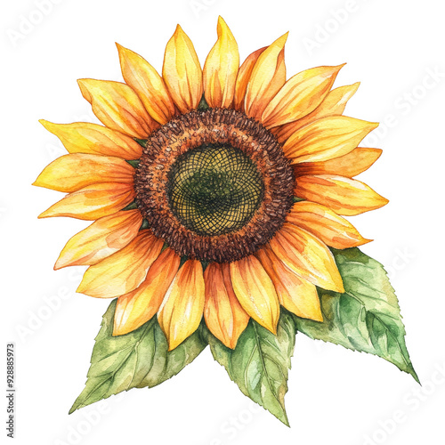 Fototapeta premium Vibrant sunflower with golden petals and green leaves, perfect for...