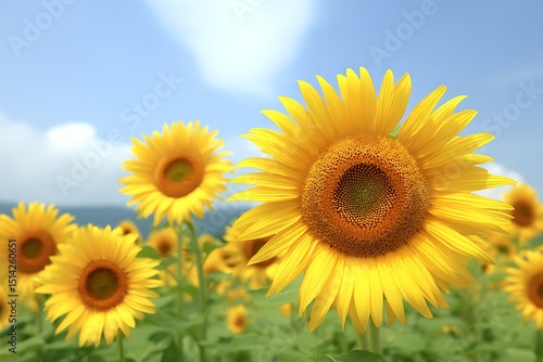 Fototapeta premium Vibrant sunflowers blooming in a sunny field under a blue sky