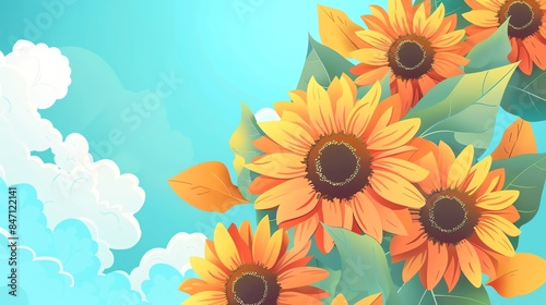 Obraz premium Vibrant Sunflowers Blooming Under Soft Blue Sky, Embodying Summer Warmth