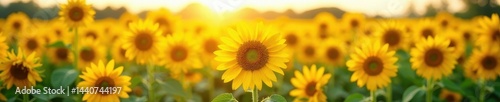 Obraz premium Vibrant sunflowers in a field, bathed in sunlight, field, bloom