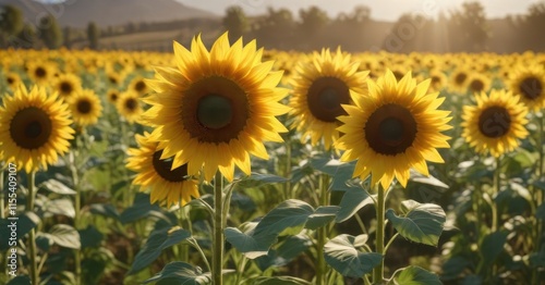 Fototapeta premium Vibrant sunflowers in a summer field, golden petals basking in sunlight ,...