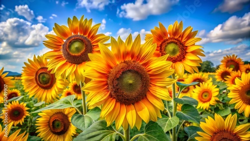 © kansak01, Fototapeta premium Vibrant sunflowers in full bloom, arranged effortlessly, embody the essence of summer's warmth and beauty, exuding
