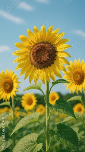 © Rawpixel.com, Obraz premium Vibrant sunflowers under clear sky.