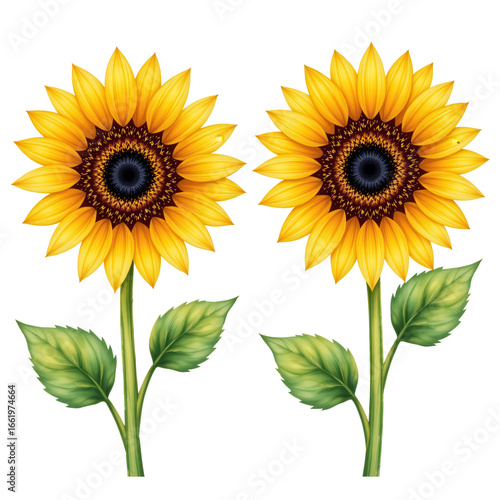 © K-MookPan, Obraz premium Vibrant Sunflowers with Bright Yellow Petals on Green Stems
