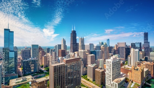 Obraz premium vibrant sunny view of chicago downtown skyline under a blue sky