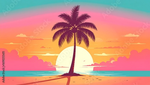 © fitrah, Fototapeta premium Vibrant sunset beach scene (1)