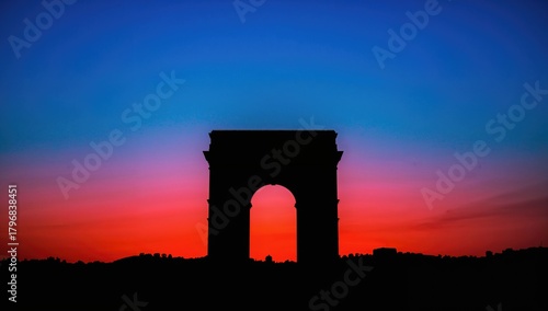 © NeuralNiche, Fototapeta premium Vibrant sunset casting shadows on an archway, evoking a sense of tranquility