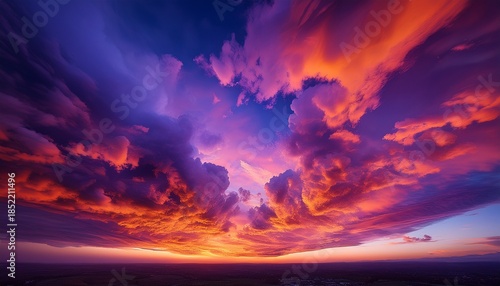 © AustinSANC, Fototapeta premium Vibrant Sunset Clouds With Hues Of Orange And Purple