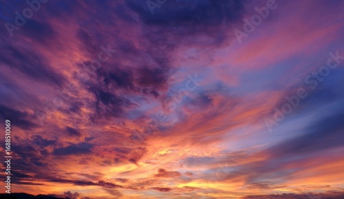 Obraz premium Vibrant sunset cloudscape. A breathtaking view of colorful clouds at sunset