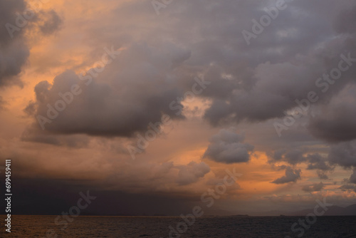 Naklejka premium Vibrant Sunset Cloudscape Over Sea