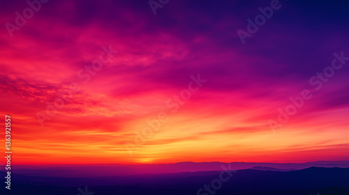© PouKpm, Obraz premium Vibrant Sunset Landscape Fiery Hues and Dramatic Sky