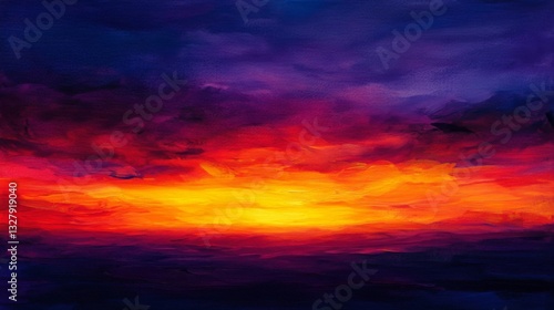 © Pure Imagination, Fototapeta premium Vibrant Sunset Landscape Painting with Intense Colors