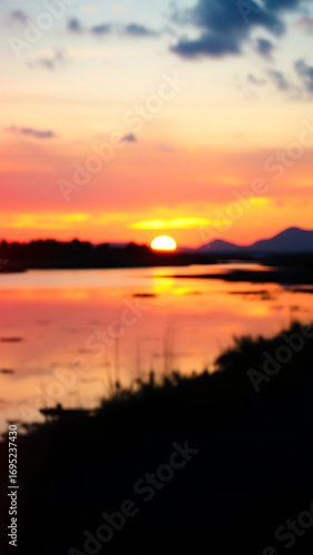 Obraz premium Vibrant Sunset Landscape with Water Reflection vertical
