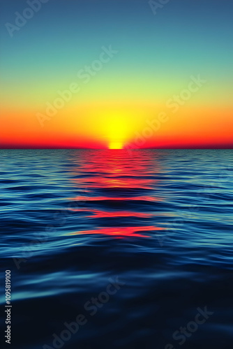 © Siasart Stock, Fototapeta premium Vibrant Sunset Ocean Background Illustration