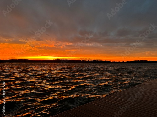 © Tanvi, Naklejka premium Vibrant sunset on the lake in summer