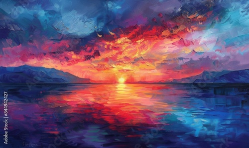 © peppastocker, Naklejka premium Vibrant sunset over a calm sea