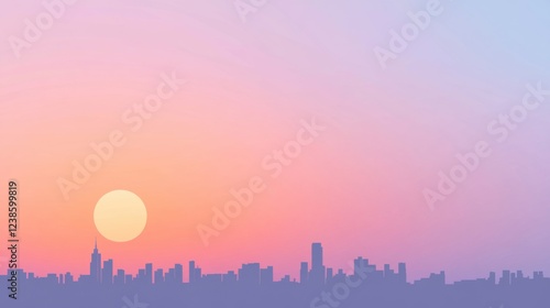 Fototapeta premium Vibrant Sunset Over a City Skyline with Soft Pastel Colors