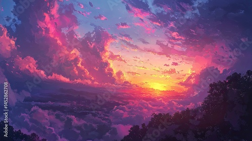 © Andi, Naklejka premium Vibrant sunset over a dramatic cloud formation.