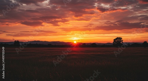 © AleniaFlow, Obraz premium Vibrant Sunset Over a Field