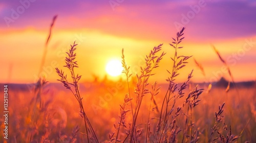 © Pure Imagination, Fototapeta premium Vibrant Sunset over a Field of Grass