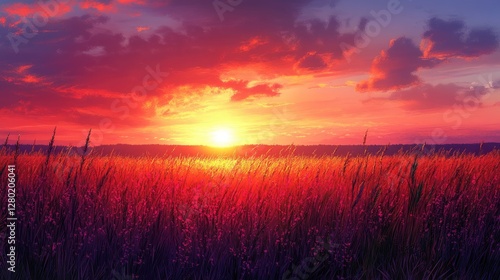 Fototapeta premium Vibrant sunset over a field of wildflowers