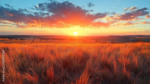 © Kakung, Fototapeta premium Vibrant sunset over a golden field