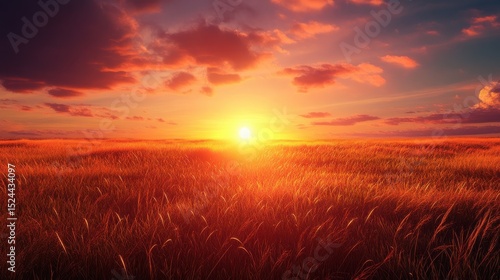 © Johannes, Fototapeta premium Vibrant sunset over a vast, fiery grassland.
